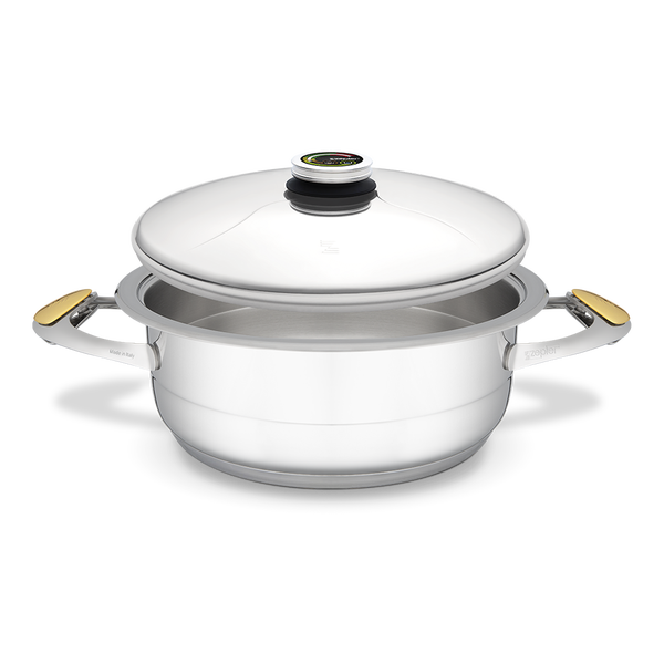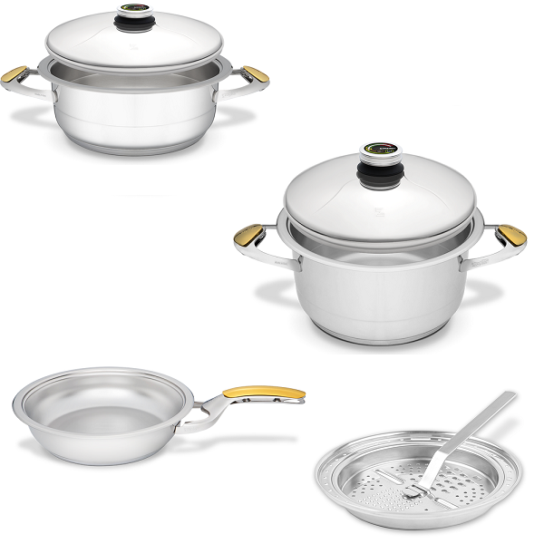 The 316L high-quality stainless steel used in the production of Masterpiece Cookware is exclusively used in applications where material quality matters the most: in surgical instruments, body implants, exclusive watches and other luxury products. This specific type of steel is non-porous, does not burn food while cooking, does not oxidize, does not retain food odors, causes no allergies and it is easy to clean. These qualities make it ideal for cooking food in a healthy way.