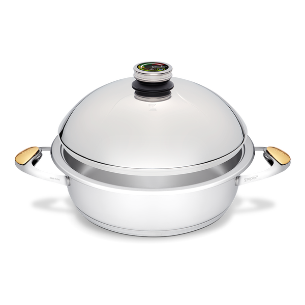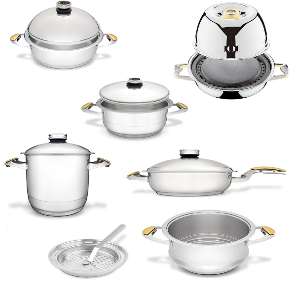 The 316L high-quality stainless steel used in the production of Masterpiece Cookware is exclusively used in applications where material quality matters the most: in surgical instruments, body implants, exclusive watches and other luxury products. This specific type of steel is non-porous, does not burn food while cooking, does not oxidize, does not retain food odors, causes no allergies and it is easy to clean. These qualities make it ideal for cooking food in a healthy way.