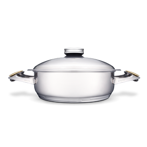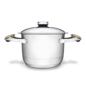 Highest quality materials: The 316L high-quality stainless steel used in the production of Masterpiece Cookware is exclusively used in applications where material quality matters the most: in surgical instruments, body implants, exclusive watches and other luxury products. This specific type of steel is non-porous, does not burn food while cooking, does not oxydise, does not retain food odours, causes no allergies and it is easy to clean. These qualities make it ideal for cooking food in a healthy way. And when the Syncro-Clik® lid is added, the highest quality cooking vessels are turned in a turbo cooking experience.