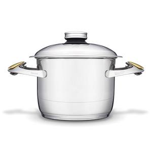 Highest Quality Materials: The 316L high-quality stainless steel used in the production of Masterpiece Cookware is exclusively used in applications where material quality matters the most: in surgical instruments, body implants, exclusive watches and other luxury products. This specific type of steel is non-porous, does not burn food while cooking, does not oxydise, does not retain food odours, causes no allergies and it is easy to clean. These qualities make it ideal for cooking food in a healthy way. And when the Syncro-Clik® lid is added, the highest quality cooking vessels are turned in a turbo cooking experience.