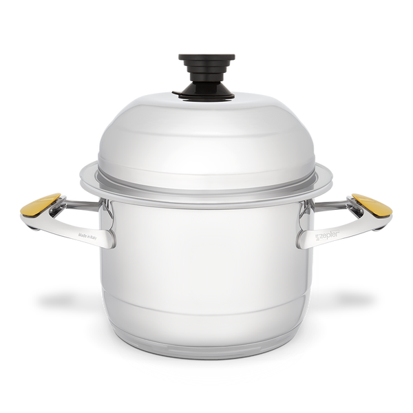 Ingenious Design: The Zepter lid fits perfectly on the pot edge hermetically sealing it to create the Closed Circle cooking process and to prevent spillage of food during cooking. This smart design does not allow cooking odours to escape from the pot thus leaving your home remaining fresh. The multi-purpose lid can also be used as a protective stand or for serving food.
