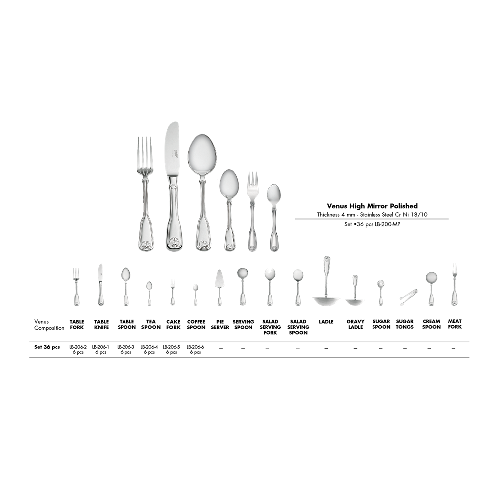 Cutlery Venus High Mirror Polished 36-Piece Set LB-200-MP