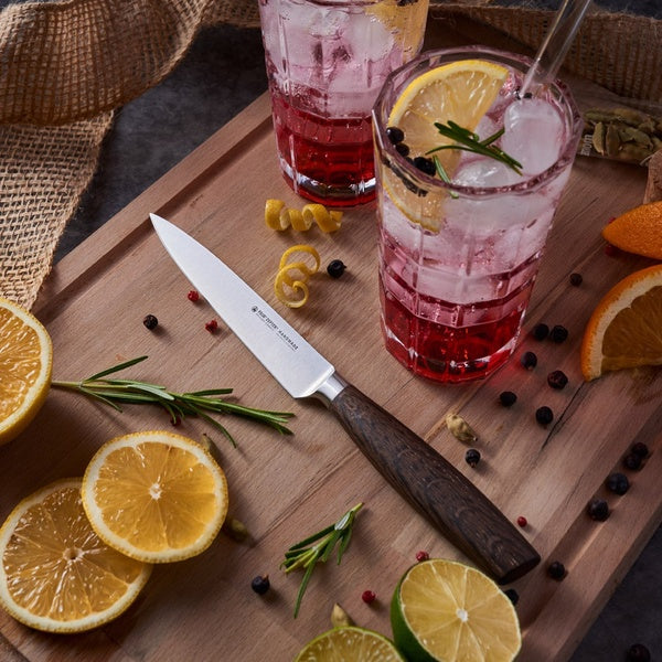 New paring kitchen knife. With its 9 cm blade, this knife is simply indispensable when peeling fruit and vegetables. Use it for any kitchen work that requires precision and delicacy, such as removing the seed from jalapeño peppers or apples. Controlled, precise cutting gives you the freedom to create a variety of shapes and forms from your food products. Comfortable handle provides maximum control over the tip and edge of the blade.