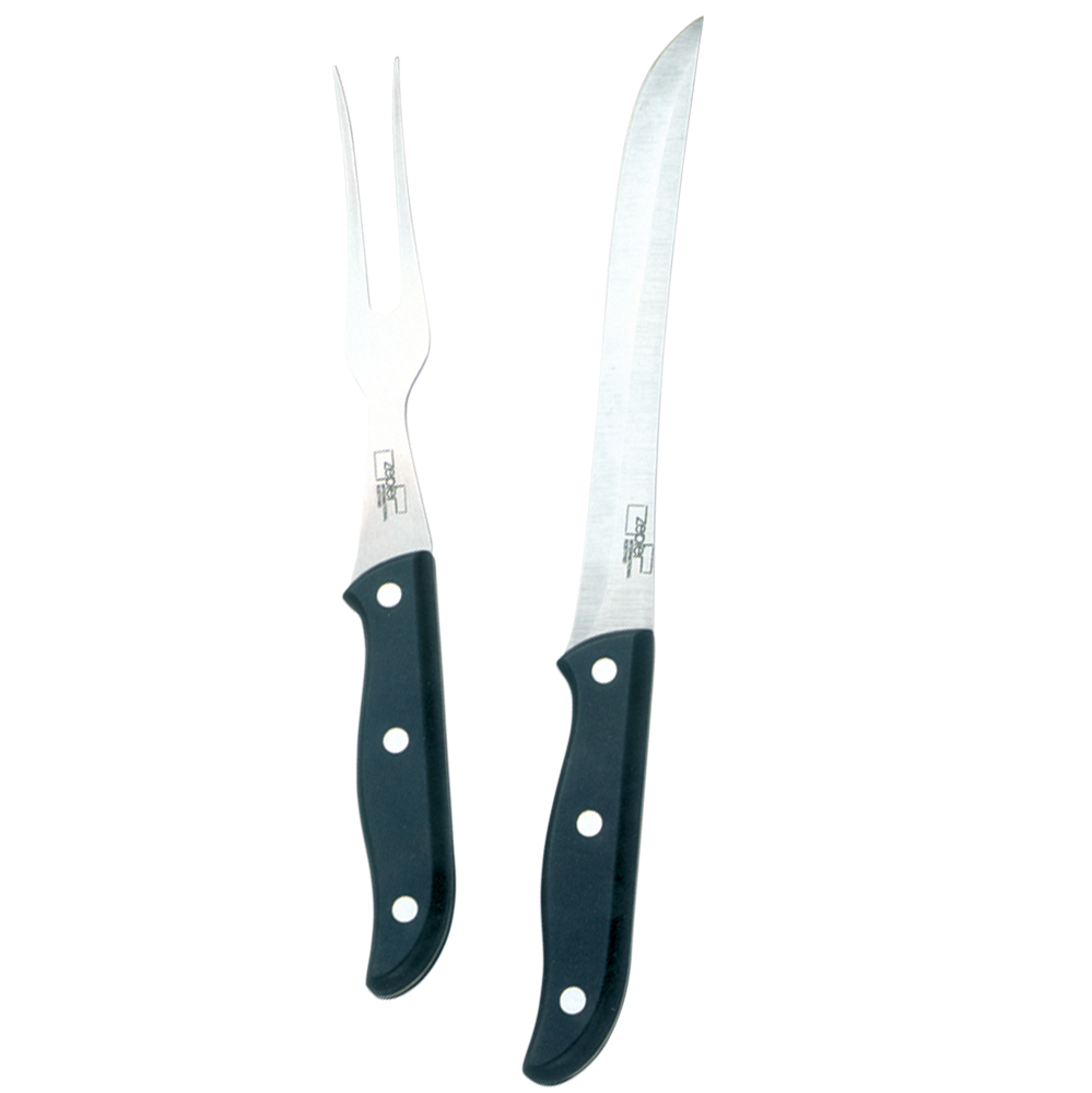 A roasting fork and a knife are irreplaceable when grilling meat. Featuring ergonomic handles for a comfortable grip, the set can also be used for carving oven-baked meat, chicken or turkey.