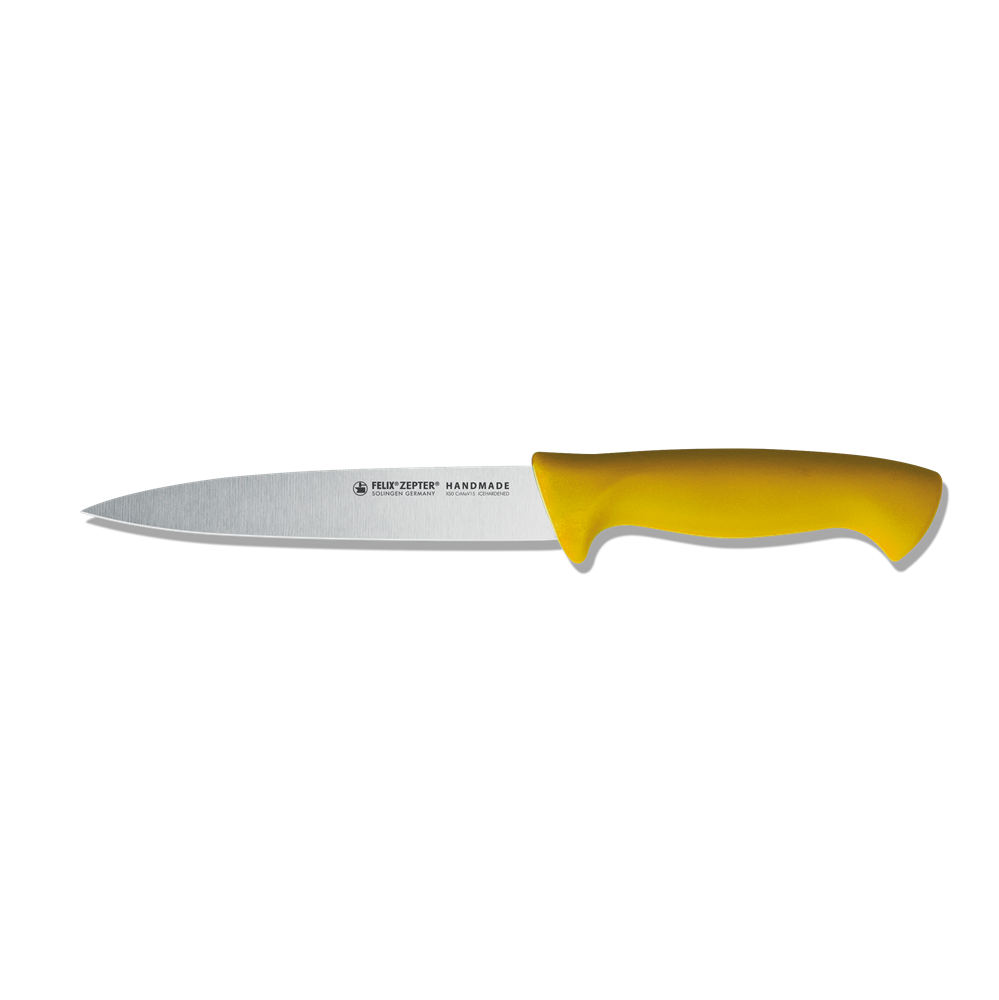 Perfectly balanced in your hand it is the trusted tool for your daily tasks in the kitchen, whether you are an aspiring chef or a real professional. The front end of the handle covers the blade, to offer additional protection when cutting.