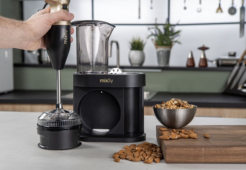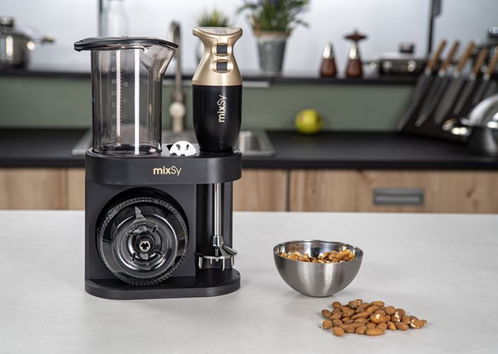mixSy® boasts some exceptional features, including an extra-powerful motor, dual-speed operation, and four attachment blades to satisfy the most demanding food preparation tasks. The stem of the appliance is made of high-quality, sturdy stainless steel, and allows you to easily use it for mixing hot ingredients directly inside the pot. The handheld kitchen assistant is quiet, durable, lightweight and easy to use, and will never let you down in the kitchen. With mixSy®, you can satisfy all of your food processing needs, thus eliminating the need for other devices. Lightweight and compact, it includes a handy space-saving stand, so you can leave it out on the worktop for easy everyday access.