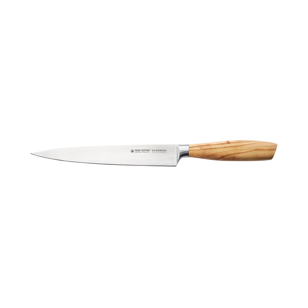 Zepter Felix carving knife is an expertly crafted tool with a wonderfully sharp edge and a flexible blade for carving mastery. Unlike its counterparts, carving knives have longer and thinner blades with the slim-line design to make clean cuts through roasts of meet and cooked poultry. Use it to cut large melons, starchy oversized roots and winter squash or to portion baguettes, bread or layer cakes.
