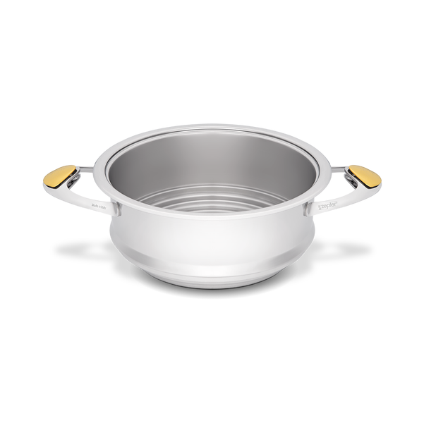 The multipurpose steamer is perfect for rinsing vegetables and fruit, as well as for draining pasta, vegetables and other ingredients. It also doubles as part of Zepter’s innovative Stacking System for steam cooking, while the highest-quality Zepter Superior Metal 316L ensures a healthy cooking process. Just place the streamer on top of a pot of the same diametre, and easily steam vegetables or fish while another dish is cooking on the bottom level of the system on the same heat source.