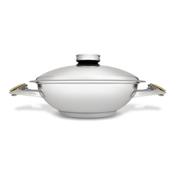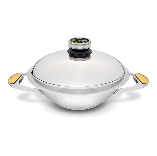 The Zepter Wok is quite literally the star of the Zepter Masterpiece Cookware collection, thanks to its unique and versatile construction and design. It can be used successfully for stir fries, deep frying, or steaming. There’s no better cooking technique for transforming small amounts of humble ingredients into delicious, healthy abundance with minimum fat, time, and energy expense. Once you know how to stir-fry, you’ll never be at a loss for a quick, economical, yet healthy meal again.